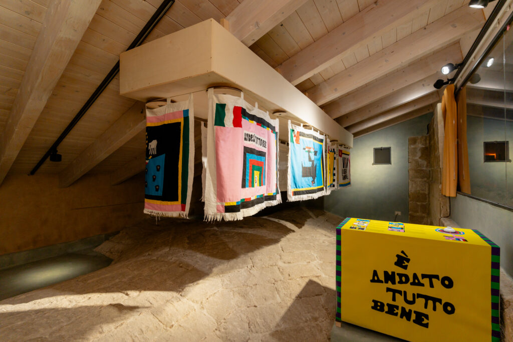 ”È andato tutto bene” è una mostra sulla percezione del presente e del passato e sulla creazione degli immaginari che la nostra società genera e dai quali viene a sua volta influenzata, in una spirale che si autoalimenta.